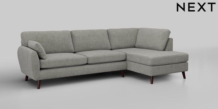 6.12.1 Buy Wilson Large Corner Chaise - Right Hand Chunky Chenille Light Grey Retro Tapered - Dark Brown from the Next UK online shop Click here to use our accessible website