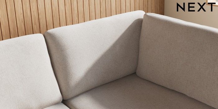 7.3.1 Buy Wilson Large Corner Chaise - Right Hand Chunky Chenille Oyster Metal Tapered - Gold from the Next UK online shop Click here to use our accessible website