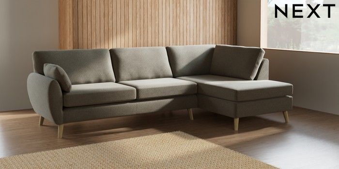 7.3.1 Buy Wilson Large Corner Chaise - Right Hand Chunky Marl Light Olive Green Retro Tapered - Light from the Next UK online shop Click here to use our accessible website