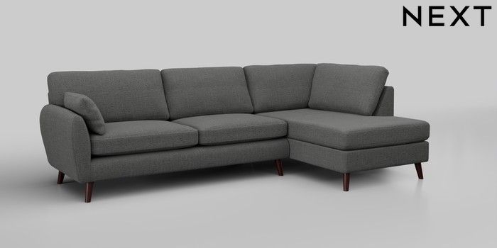 6.12.1 Buy Wilson Large Corner Chaise - Right Hand Chunky Texture Dark Grey Retro Tapered - Dark Brown from the Next UK online shop Click here to use our accessible website