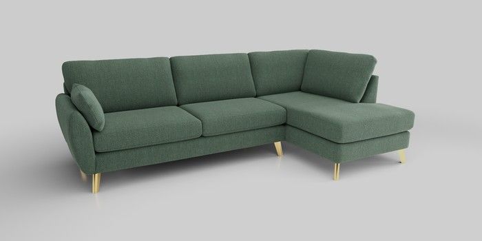 6.12.1 Buy Wilson Large Corner Chaise - Right Hand Chunky Texture Mid Forest Green Metal Tapered - Gold from the Next UK online shop Click here to use our accessible website