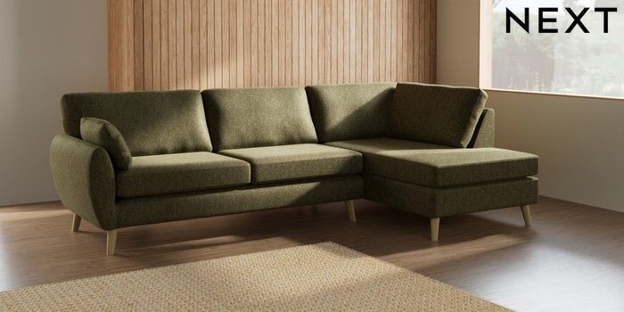 7.3.1 Buy Wilson Large Corner Chaise - Right Hand Cotswold Chenille Dark Green Retro Tapered - Light from the Next UK online shop