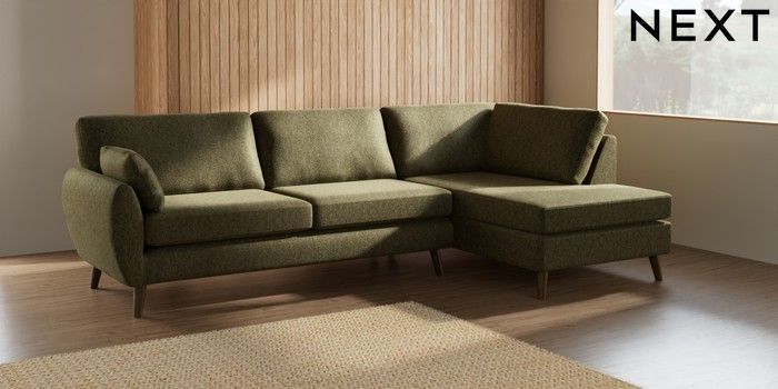 7.3.1 Buy Wilson Large Corner Chaise - Right Hand Cotswold Chenille Dark Green Retro Tapered - Mid from the Next UK online shop