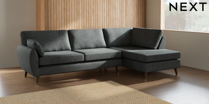 7.3.1 Buy Wilson Large Corner Chaise - Right Hand Cotswold Chenille Dark Grey Low Retro Tapered Metal Cap - Mid from the Next UK online shop