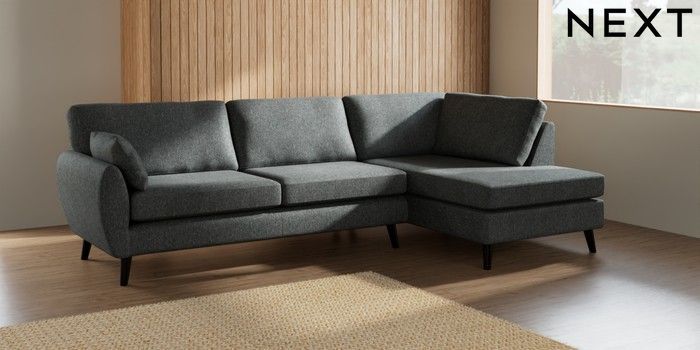 7.3.1 Buy Wilson Large Corner Chaise - Right Hand Cotswold Chenille Dark Grey Retro Tapered - Dark from the Next UK online shop