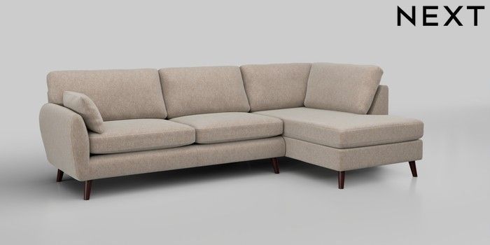 6.12.1 Buy Wilson Large Corner Chaise - Right Hand Cotswold Chenille Light Natural Retro Tapered - Dark Brown from the Next UK online shop Click here to use our accessible website