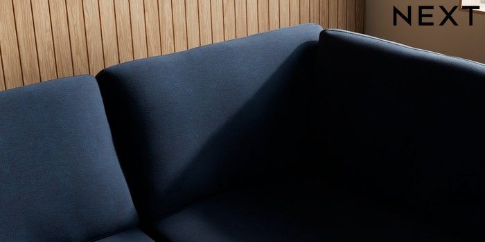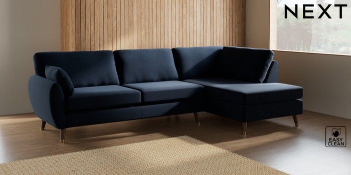 7.3.1 Buy Wilson Large Corner Chaise - Right Hand Fine Chenille Easy Clean Dark Navy Blue Low Retro Tapered Metal Cap - Mid from the Next UK online shop