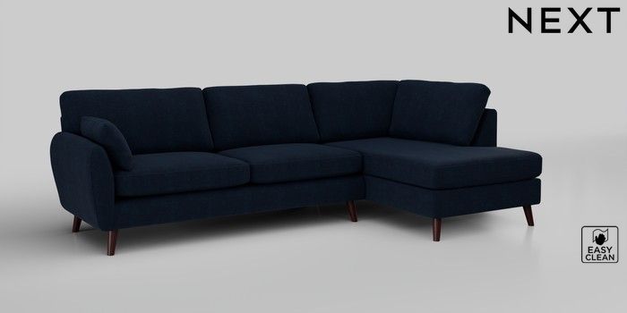 6.12.1 Buy Wilson Large Corner Chaise - Right Hand Fine Chenille Easy Clean Dark Navy Blue Retro Tapered - Dark Brown from the Next UK online shop Click here to use our accessible website