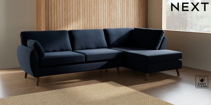 7.3.1 Buy Wilson Large Corner Chaise - Right Hand Fine Chenille Easy Clean Dark Navy Blue Retro Tapered - Mid from the Next UK online shop