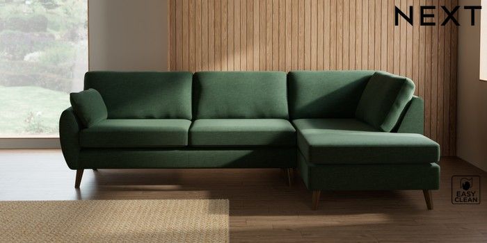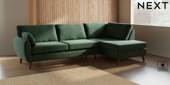 7.3.1 Buy Wilson Large Corner Chaise - Right Hand Fine Chenille Easy Clean Mid Khaki Green Retro Tapered - Mid from the Next UK online shop