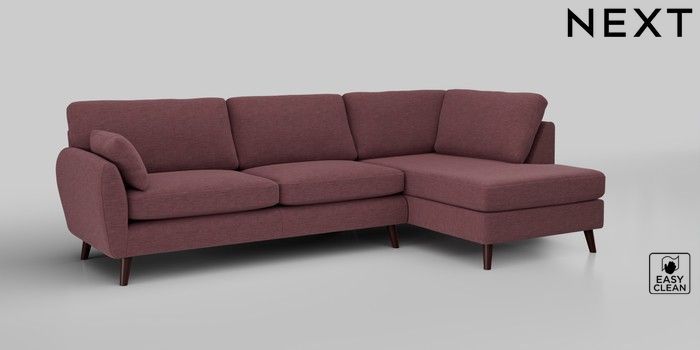 6.12.1 Buy Wilson Large Corner Chaise - Right Hand Fine Chenille Easy Clean Mid Mulberry Purple Retro Tapered - Dark Brown from the Next UK online shop Click here to use our accessible website