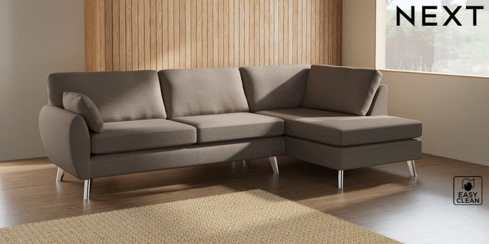 7.3.1 Buy Wilson Large Corner Chaise - Right Hand Fine Chenille Easy Clean Mid Taupe Brown Metal Tapered - Chrome from the Next UK online shop Click here to use our accessible website