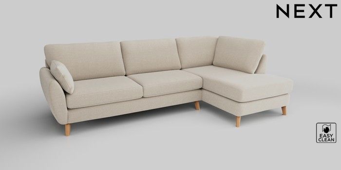 6.12.13 Buy Wilson Large Corner Chaise - Right Hand Fine Chenille Easy Clean Oyster Retro Tapered - Light from the Next UK online shop Click here to use our accessible website