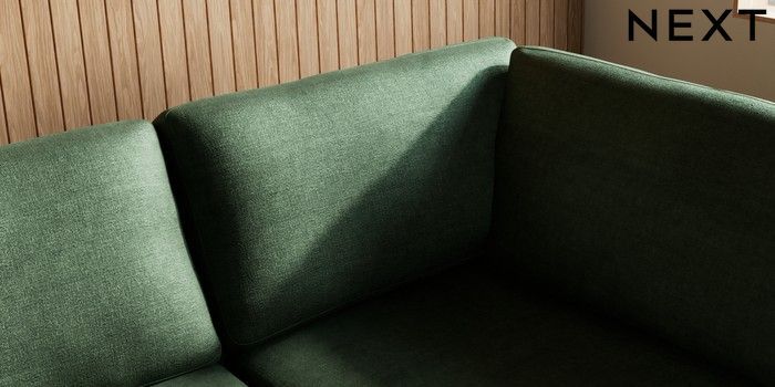 7.3.1 Buy Wilson Large Corner Chaise - Right Hand Luxe Chenille Dark Green Low Retro Tapered Metal Cap - Mid from the Next UK online shop