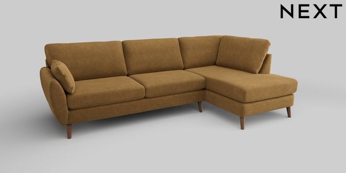 6.12.1 Buy Wilson Large Corner Chaise - Right Hand Luxe Chenille Honey Yellow Retro Tapered - Mid from the Next UK online shop Click here to use our accessible website