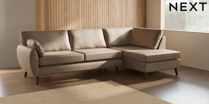 7.2.10 Buy Wilson Large Corner Chaise - Right Hand Luxe Chenille Mid Camel Beige Retro Tapered - Mid from the Next UK online shop Click here to use our accessible website