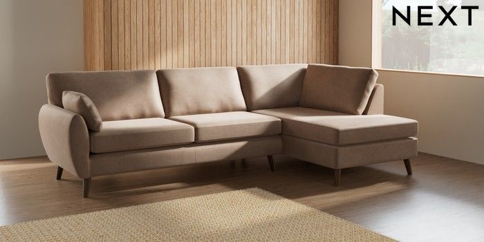 7.3.1 Buy Wilson Large Corner Chaise - Right Hand Luxe Chenille Mid Natural Retro Tapered - Mid from the Next UK online shop