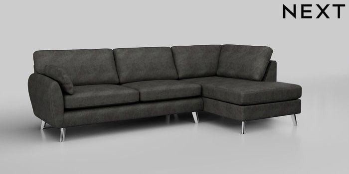 6.12.1 Buy Wilson Large Corner Chaise - Right Hand Monza Faux Leather Easy Clean Dark Grey Metal Tapered - Chrome from the Next UK online shop Click here to use our accessible website