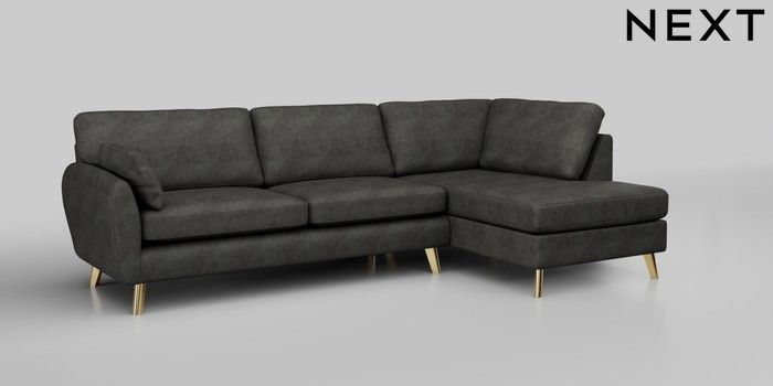 6.12.1 Buy Wilson Large Corner Chaise - Right Hand Monza Faux Leather Easy Clean Dark Grey Metal Tapered - Gold from the Next UK online shop Click here to use our accessible website