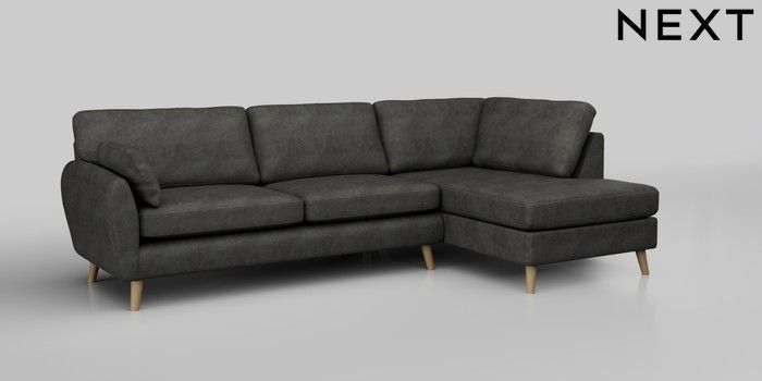 6.12.1 Buy Wilson Large Corner Chaise - Right Hand Monza Faux Leather Easy Clean Dark Grey Retro Tapered - Light from the Next UK online shop Click here to use our accessible website