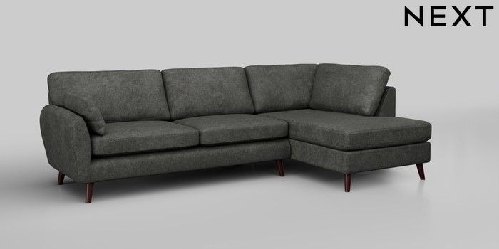 6.12.1 Buy Wilson Large Corner Chaise - Right Hand Plush Chenille Dark Grey Retro Tapered - Dark Brown from the Next UK online shop Click here to use our accessible website