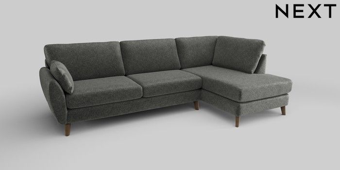 6.12.1 Buy Wilson Large Corner Chaise - Right Hand Plush Chenille Dark Grey Retro Tapered - Mid from the Next UK online shop Click here to use our accessible website