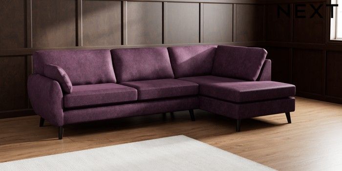 7.3.1 Buy Wilson Large Corner Chaise - Right Hand Plush Chenille Dark Plum Purple Retro Tapered - Dark from the Next UK online shop