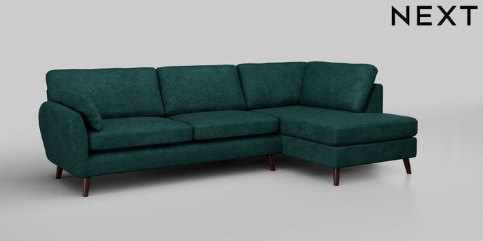 6.12.1 Buy Wilson Large Corner Chaise - Right Hand Plush Chenille Dark Teal Green Retro Tapered - Dark Brown from the Next UK online shop Click here to use our accessible website