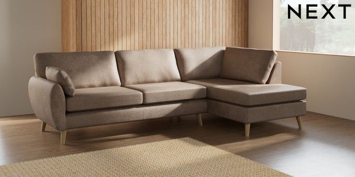 7.3.1 Buy Wilson Large Corner Chaise - Right Hand Plush Chenille Mid Natural Retro Tapered - Light from the Next UK online shop