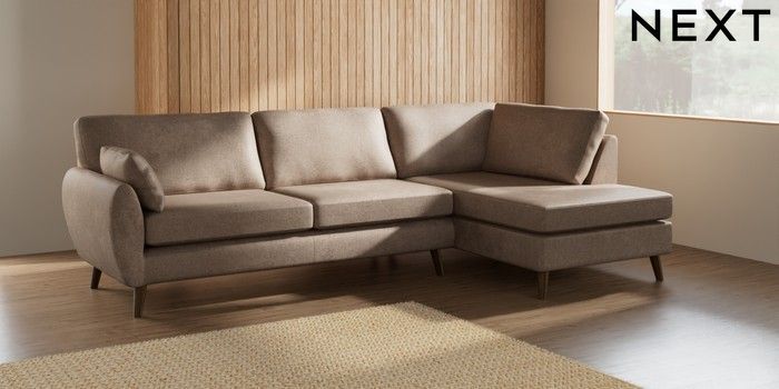 7.2.10 Buy Wilson Large Corner Chaise - Right Hand Plush Chenille Mid Natural Retro Tapered - Mid from the Next UK online shop Click here to use our accessible website