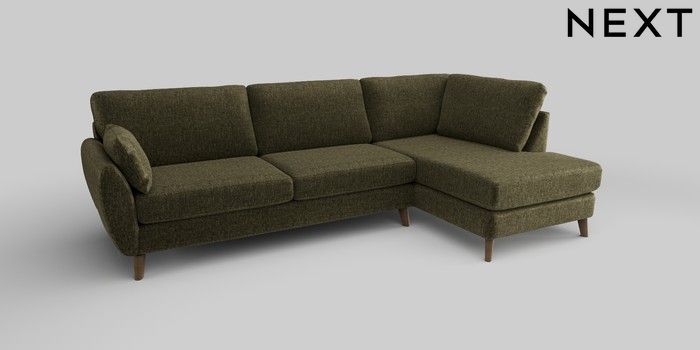 6.12.1 Buy Wilson Large Corner Chaise - Right Hand Plush Chenille Moss Green Retro Tapered - Mid from the Next UK online shop Click here to use our accessible website