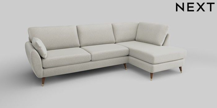 6.12.13 Buy Wilson Large Corner Chaise - Right Hand Plush Chenille Oyster Low Retro Tapered Metal Cap - Mid from the Next UK online shop Click here to use our accessible website
