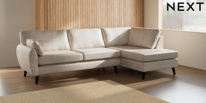 7.3.1 Buy Wilson Large Corner Chaise - Right Hand Plush Chenille Oyster Retro Tapered - Dark from the Next UK online shop
