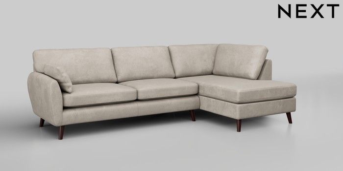6.12.1 Buy Wilson Large Corner Chaise - Right Hand Plush Chenille Oyster Retro Tapered - Dark Brown from the Next UK online shop Click here to use our accessible website