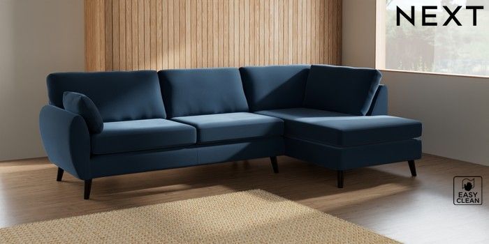 7.3.1 Buy Wilson Large Corner Chaise - Right Hand Plush Velvet Easy Clean Airforce Blue Retro Tapered - Dark from the Next UK online shop