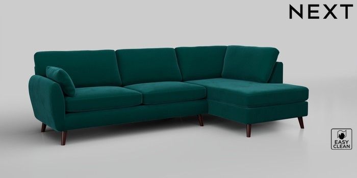 6.12.1 Buy Wilson Large Corner Chaise - Right Hand Plush Velvet Easy Clean Juniper Green Retro Tapered - Dark Brown from the Next UK online shop Click here to use our accessible website