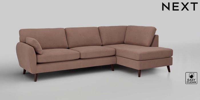 6.12.1 Buy Wilson Large Corner Chaise - Right Hand Plush Velvet Easy Clean Mid Natural Retro Tapered - Dark Brown from the Next UK online shop Click here to use our accessible website