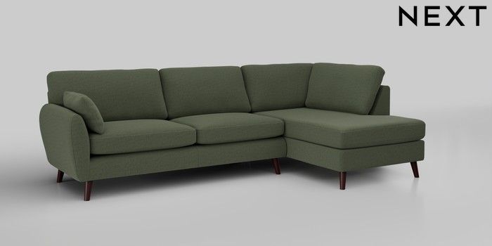 6.12.1 Buy Wilson Large Corner Chaise - Right Hand Relaxed Linen Look Dark Green Retro Tapered - Dark Brown from the Next UK online shop Click here to use our accessible website