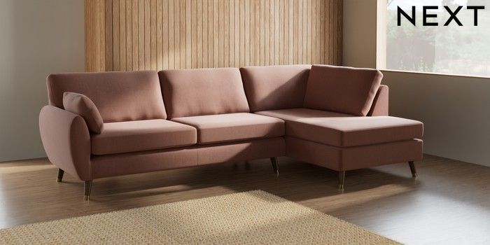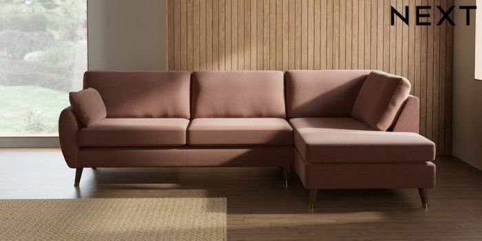 7.3.1 Buy Wilson Large Corner Chaise - Right Hand Relaxed Linen Look Light Rust Brown Low Retro Tapered Metal Cap - Mid from the Next UK online shop