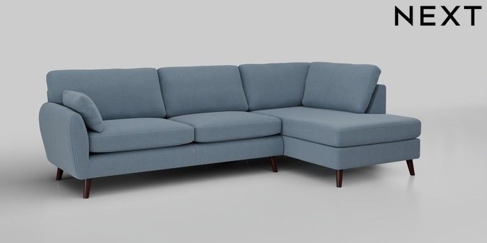 6.12.1 Buy Wilson Large Corner Chaise - Right Hand Relaxed Linen Look Mid Blue Retro Tapered - Dark Brown from the Next UK online shop Click here to use our accessible website
