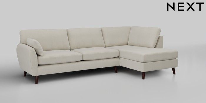 6.12.1 Buy Wilson Large Corner Chaise - Right Hand Relaxed Linen Look Oyster Retro Tapered - Dark Brown from the Next UK online shop Click here to use our accessible website