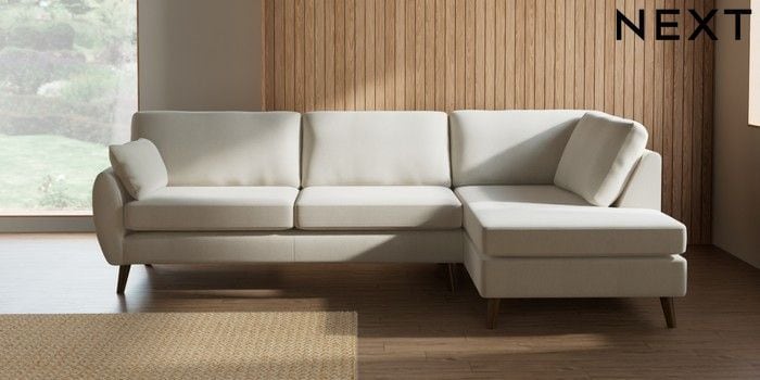 7.3.1 Buy Wilson Large Corner Chaise - Right Hand Relaxed Linen Look Oyster Retro Tapered - Mid from the Next UK online shop Click here to use our accessible website