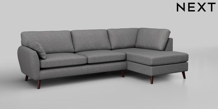 6.12.1 Buy Wilson Large Corner Chaise - Right Hand Studio Chenille Mid Grey Retro Tapered - Dark Brown from the Next UK online shop Click here to use our accessible website