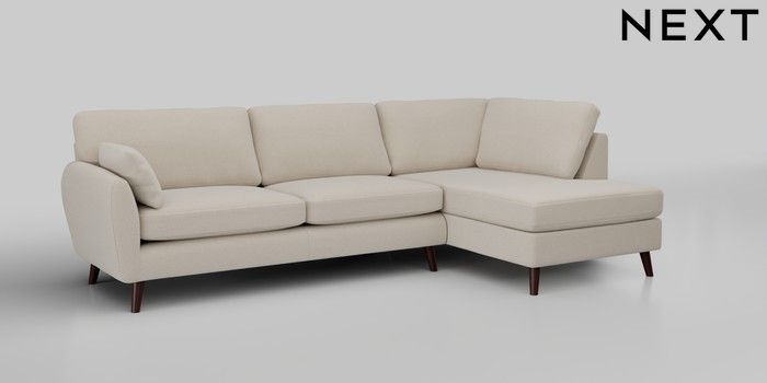 6.12.1 Buy Wilson Large Corner Chaise - Right Hand Studio Chenille Oyster Retro Tapered - Dark Brown from the Next UK online shop Click here to use our accessible website