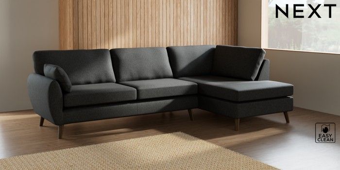 7.3.1 Buy Wilson Large Corner Chaise - Right Hand Tweedy Blend Easy Clean Charcoal Grey Retro Tapered - Mid from the Next UK online shop Click here to use our accessible website