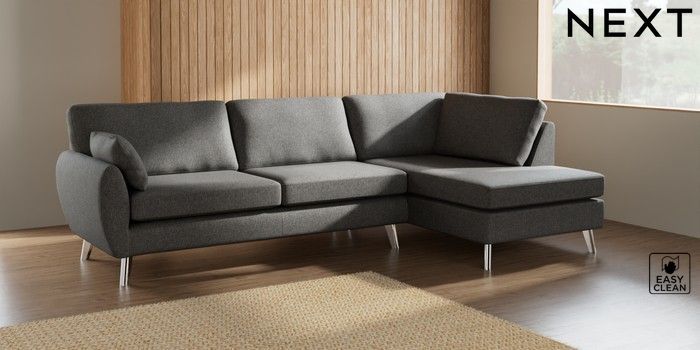 7.3.1 Buy Wilson Large Corner Chaise - Right Hand Tweedy Blend Easy Clean Dark Grey Metal Tapered - Chrome from the Next UK online shop