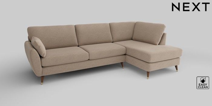 6.12.13 Buy Wilson Large Corner Chaise - Right Hand Tweedy Blend Easy Clean Light Dove Natural Low Retro Tapered Metal Cap - Mid from the Next UK online shop Click here to use our accessible website