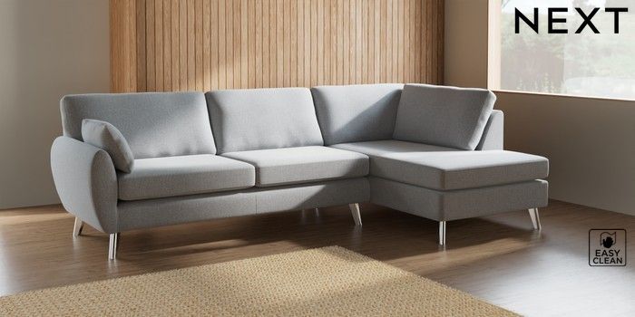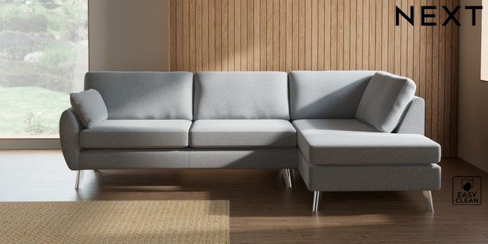 7.3.1 Buy Wilson Large Corner Chaise - Right Hand Tweedy Blend Easy Clean Light Silver Grey Metal Tapered - Chrome from the Next UK online shop