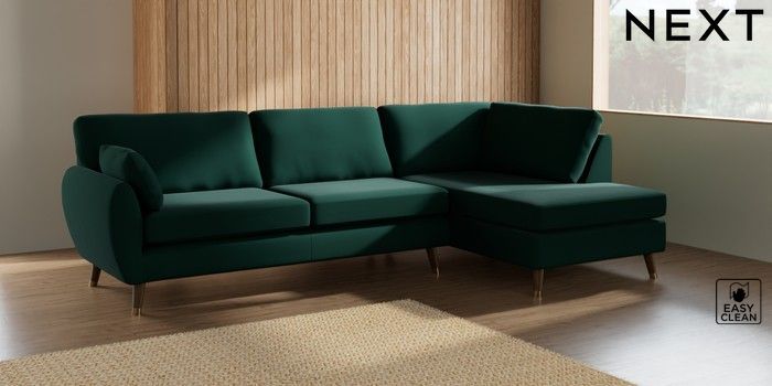 7.3.1 Buy Wilson Large Corner Chaise - Right Hand Plush Velvet Easy Clean Bottle Green Low Retro Tapered Metal Cap - Mid from the Next UK online shop