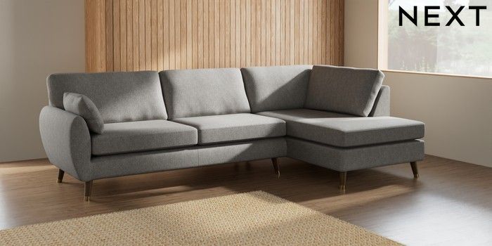 7.3.1 Buy Wilson Large Corner Chaise - Right Hand Tweedy Chenille Mid Grey Low Retro Tapered Metal Cap - Mid from the Next UK online shop